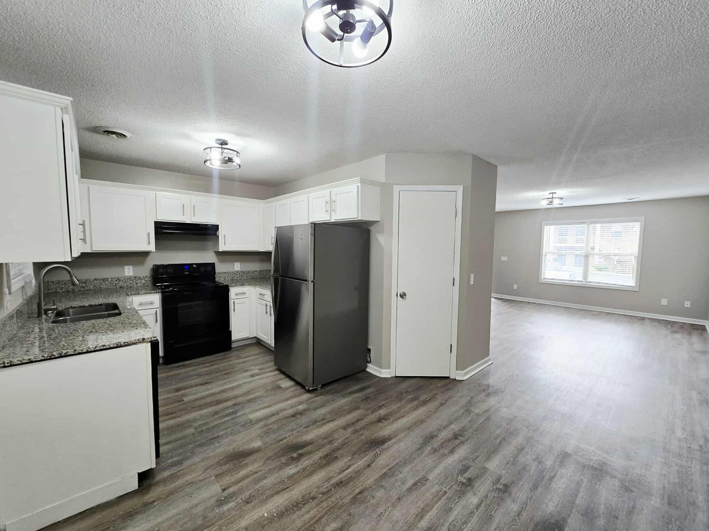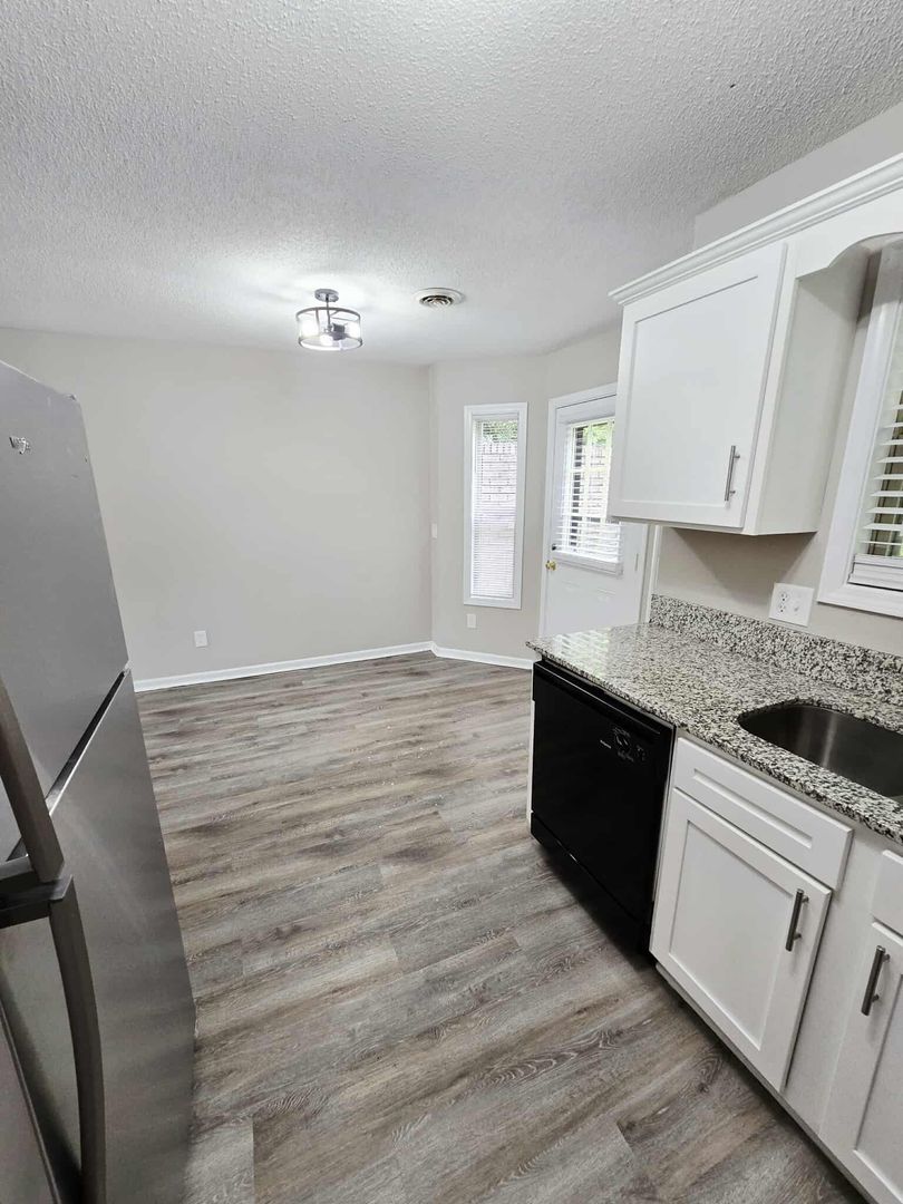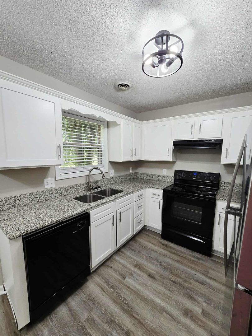 Gorgeous kitchen with granite countertops & modern white shaker cabinets and stainless appliances.